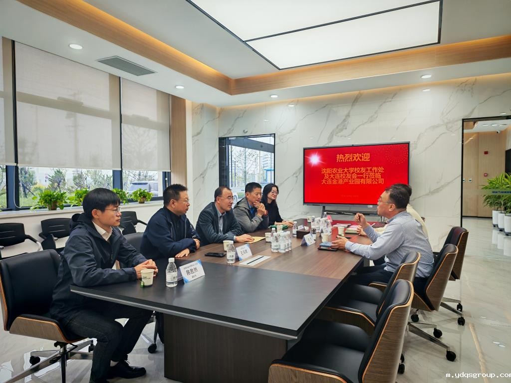 在大连金港产业园有限公司,校友办及大连校友会一行与园区总经理、金港集团副总裁97级公共关系文秘专业陈健校友就产学研融合展开交流。陈健校友介绍了产业园的基本情况及发展定位,并希望加强与母校的深度合作。